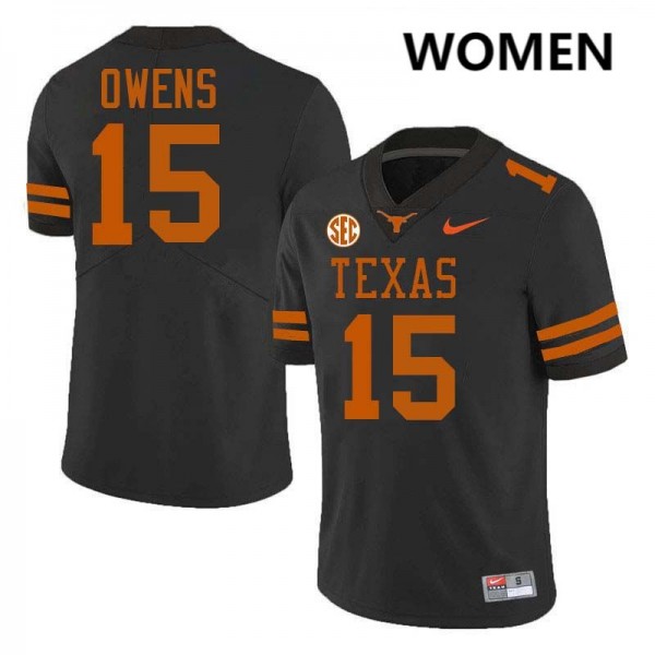 #15 Trey Owens Texas Black Womens Jersey Player Football